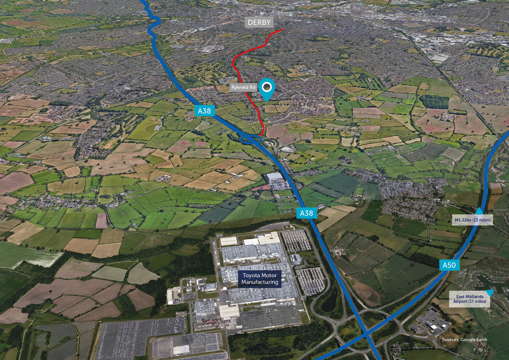 Heatherton Point occupies a prime location being c.2.5 miles north east of the A38/A50 junction and situated on the fringes of Derby city centre, accessed off the A38 on Rykneld Road. The on-site infrastructure has been completed as part of the delivery of a new Aldi supermarket at the entrance to the scheme.